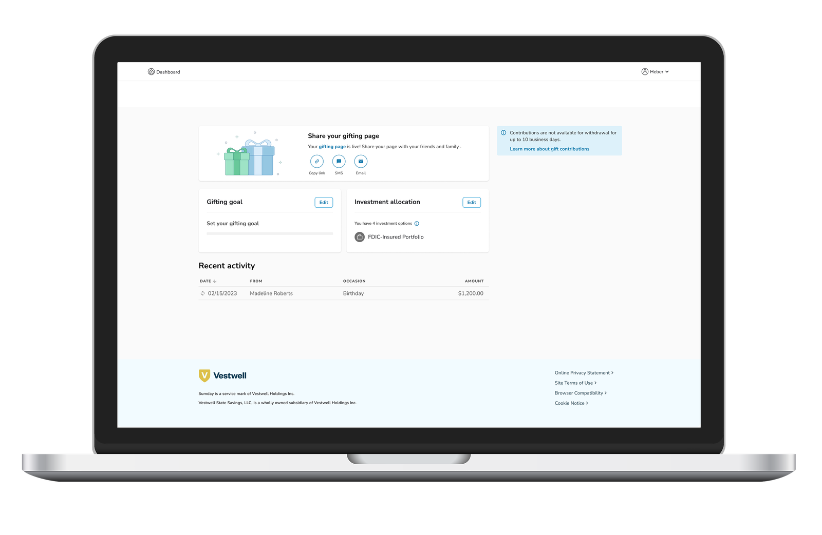 A gifting page is a unique web page that allows your loved ones to easily make contributions directly to your account online. They can simply go to your unique URL and add funds to your account.